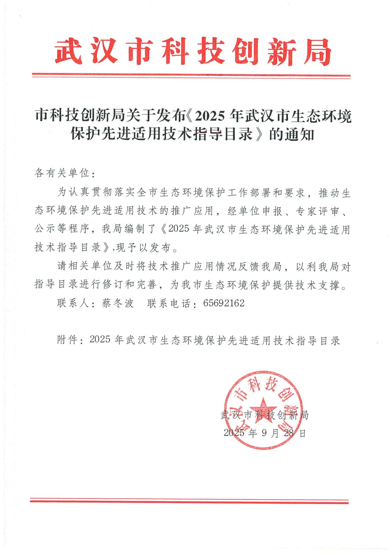 秀谷科技入选《2025年武汉市生态环境保护先进适用技术指导目录》